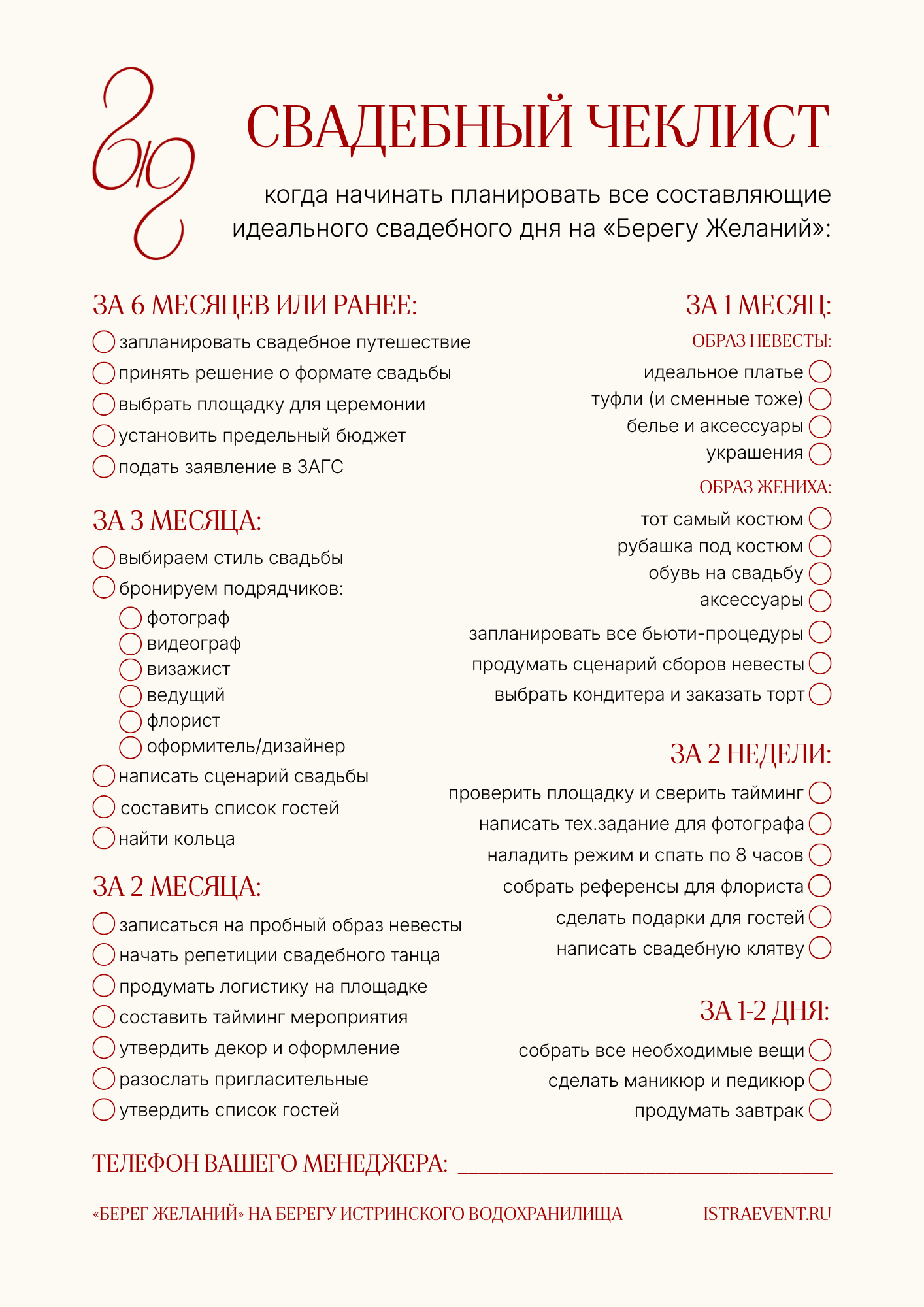 Мы сделали удобный чек-лист для подготовки к свадьбе, чтобы вы могли планировать свое свадебное торжество с вниманием к самым важным деталям!